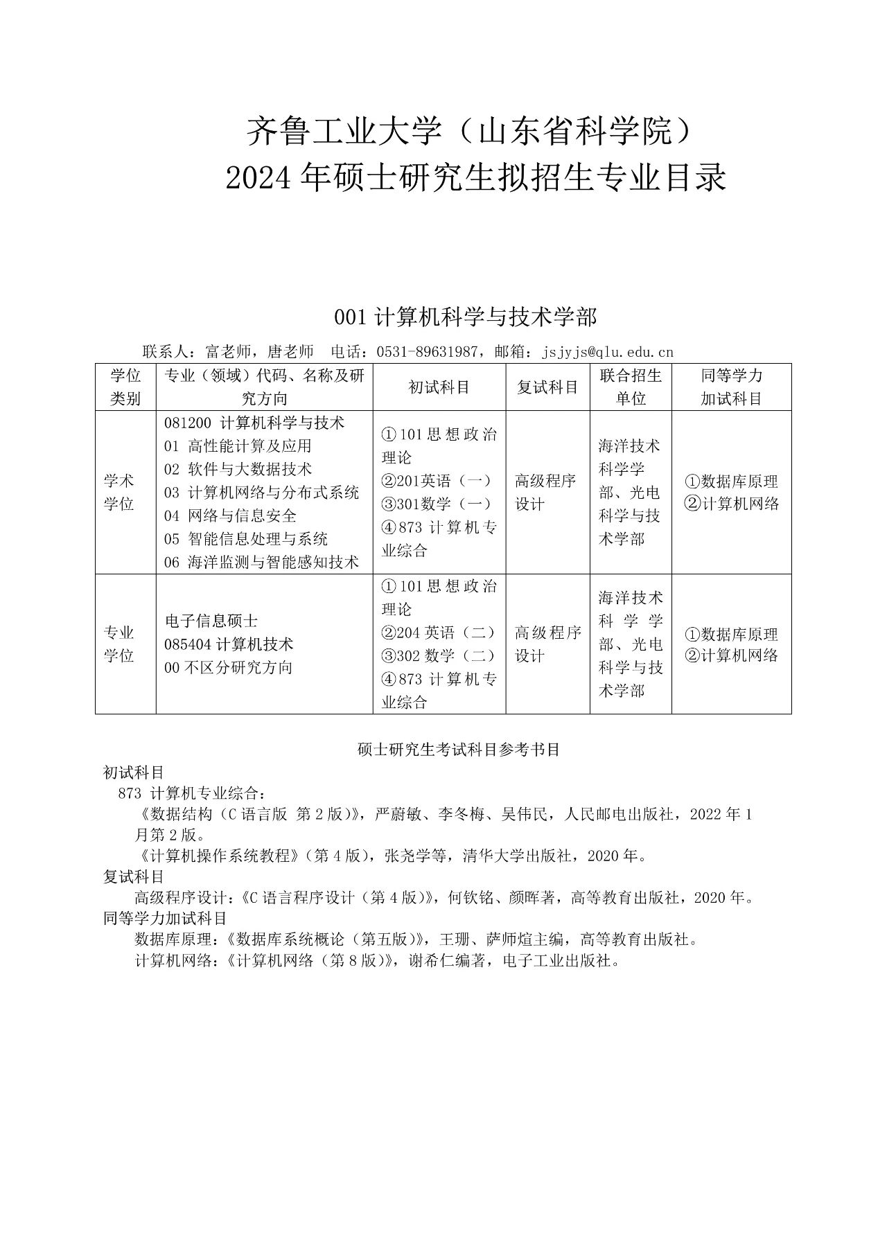 齐鲁工业大学(山东省科学院)发布了2024年硕士研究生拟招生专业目录。