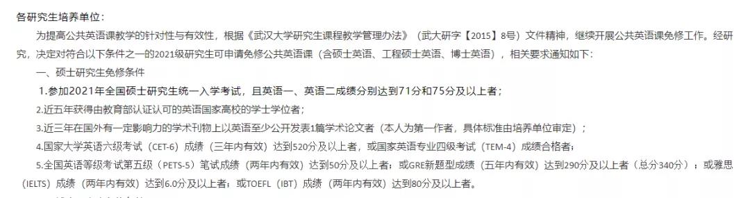 四川大学对2021级硕士研究生第一外国语(英语)免修条件做如下安排: