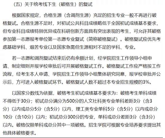 对于志在必得的小伙伴来说,这个分数线自然是没有压力的。但对于偏科严重的复试边缘人而言,提前了解一下“破格录取政策”还是很有必要的!